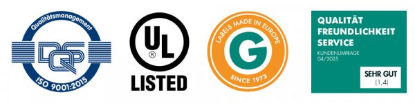 | Besonderheit | Industriestandard für MHD- und Chargencodierung | Hohe Detailauflösung im grafischen Druck | Universell einsetzbare Standardfolie, breite Farbpalette | Spezialklebersystem für schwierige Materialien und Außenanwendungen |